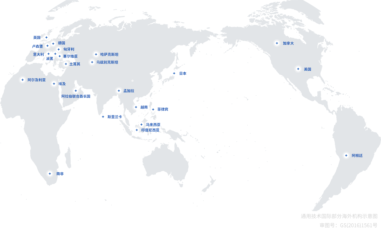 國(guó)際通用 通用技術(shù)國(guó)際致力于服務(wù)全球市場(chǎng),在世界范圍內(nèi)廣泛尋求合作,構(gòu)建了覆蓋面廣、反應(yīng)迅速的國(guó)際市場(chǎng)經(jīng)營(yíng)網(wǎng)絡(luò),公司業(yè)務(wù)遍布五大洲的100多個(gè)國(guó)家和地區(qū)。